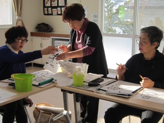 この日はだるまの絵を模写して、そこに思い思いの言葉をつけていきました。
