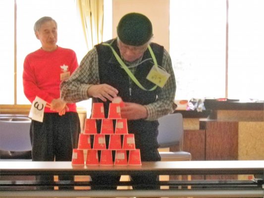 ・紙コップを積み上げ、しまうまでの速さを競う『つんで、つんで』