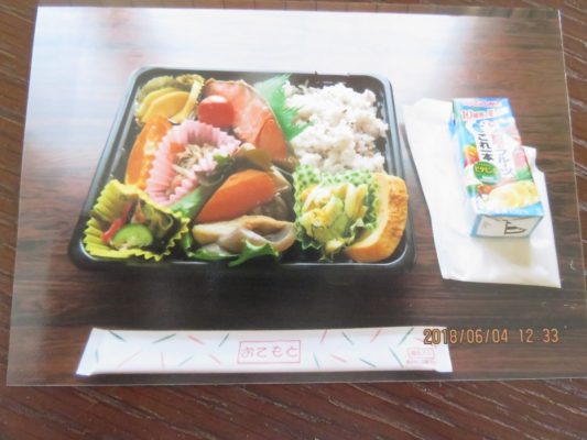 お弁当には福祉委員の中村さんの手作りの夕張メロンとフキの漬物が入っていました。とってもおいしかったです♡市販のお弁当では絶対に味わえない特別な味ですね(^^♪