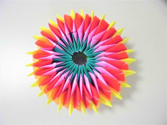 手作りの『折り紙万華鏡』を持ってきてくださいました。