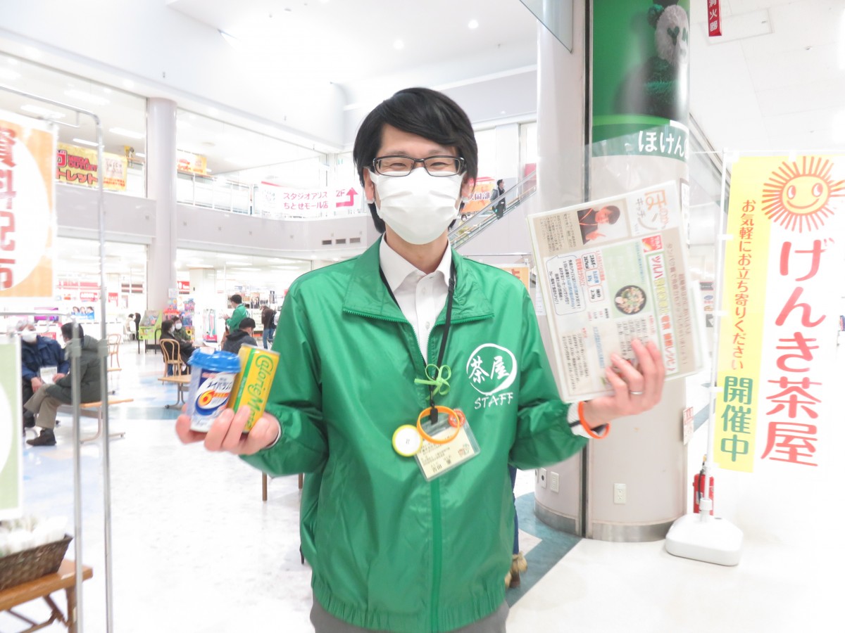 第1回目のげんき茶屋はちとせモールのセンター広場で行いました。新型コロナ感染防止のため資料配布のみの活動でしたが、