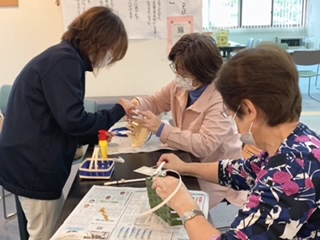 大広間の半分を使用して、エコクラフトによるカゴ作り!