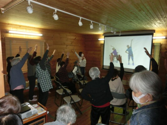 当日は、かみかみ百歳体操とスローエアロビック体操の二本立てでした。