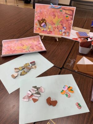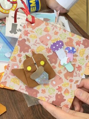 メインとなるリスの作成はとても細かい折り方もあり苦戦した場面もありましたが、とても素敵な作品が出来上がりました。