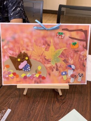 折り紙スペースでは、季節にあった綺麗な柄の折り紙でリスやどんぐり、キノコを作成しました🍄