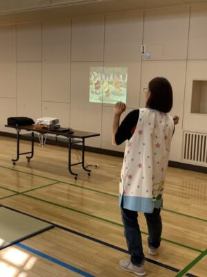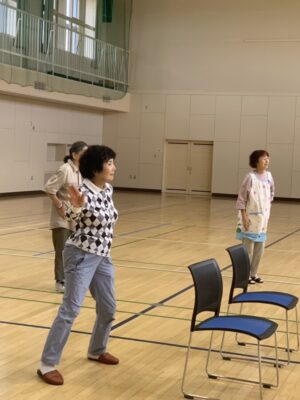 始めに、血圧測定などの健康チエックをし、映像を見ながら、楽しいアンパンマン体操を行いました。