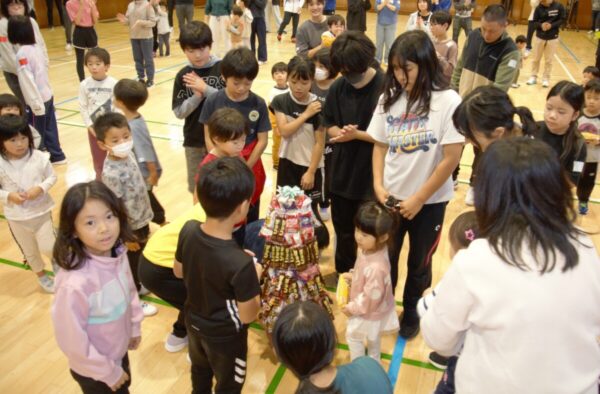 優勝授与式 今年は大きなお菓子のトロフィーです (^^)v
