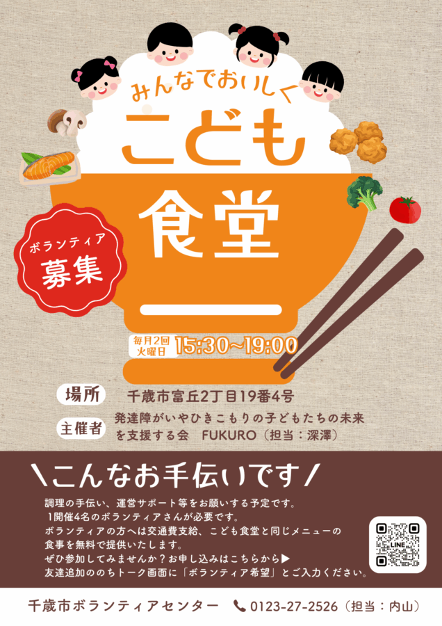 | お申込み・お問合せ | 千歳市社会福祉協議会 地域福祉課地域福祉係(担当:内山) 0123-27-2526 |