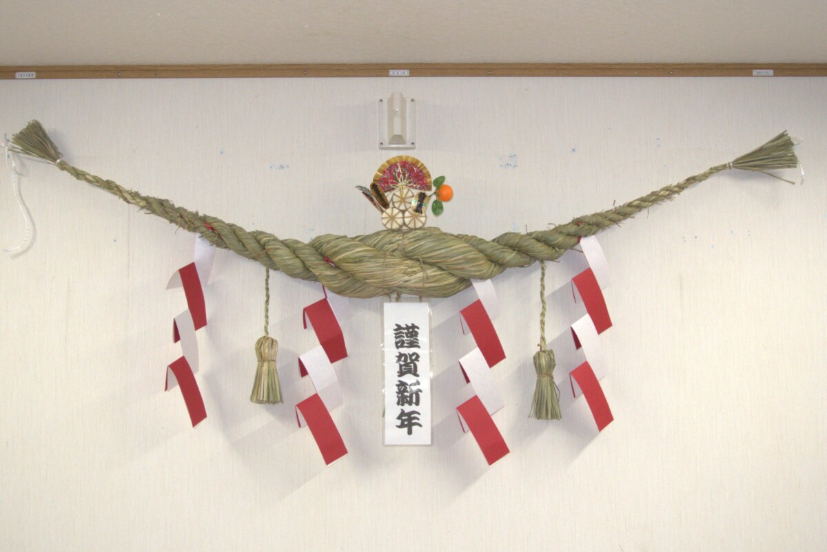 しめ縄は12月28日から会館入り口に飾られます。