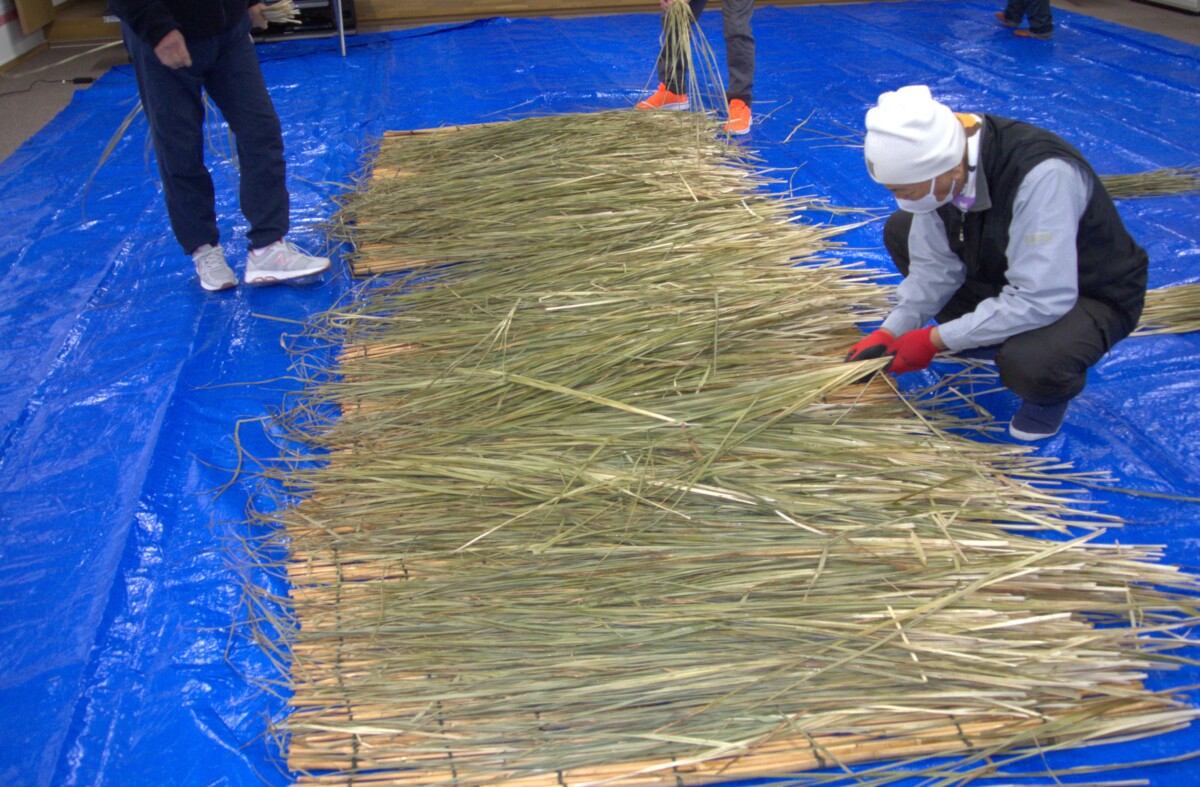 今回作成するしめ縄は2本、「大きいしめ縄」は自由ケ丘会館入り口に飾られ、