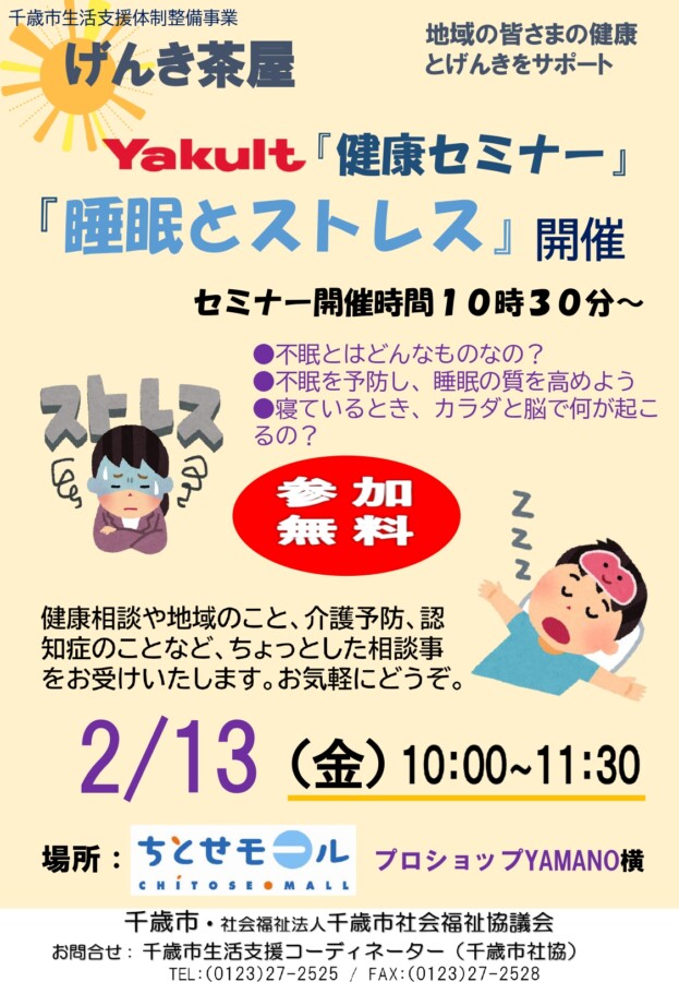 「睡眠とストレス」講座開催します~2月のげんき茶屋のお知らせ~