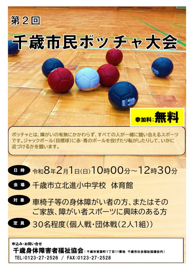 第2回千歳市民ボッチャ大会を開催します🎉【千歳身体障害者福祉協会】