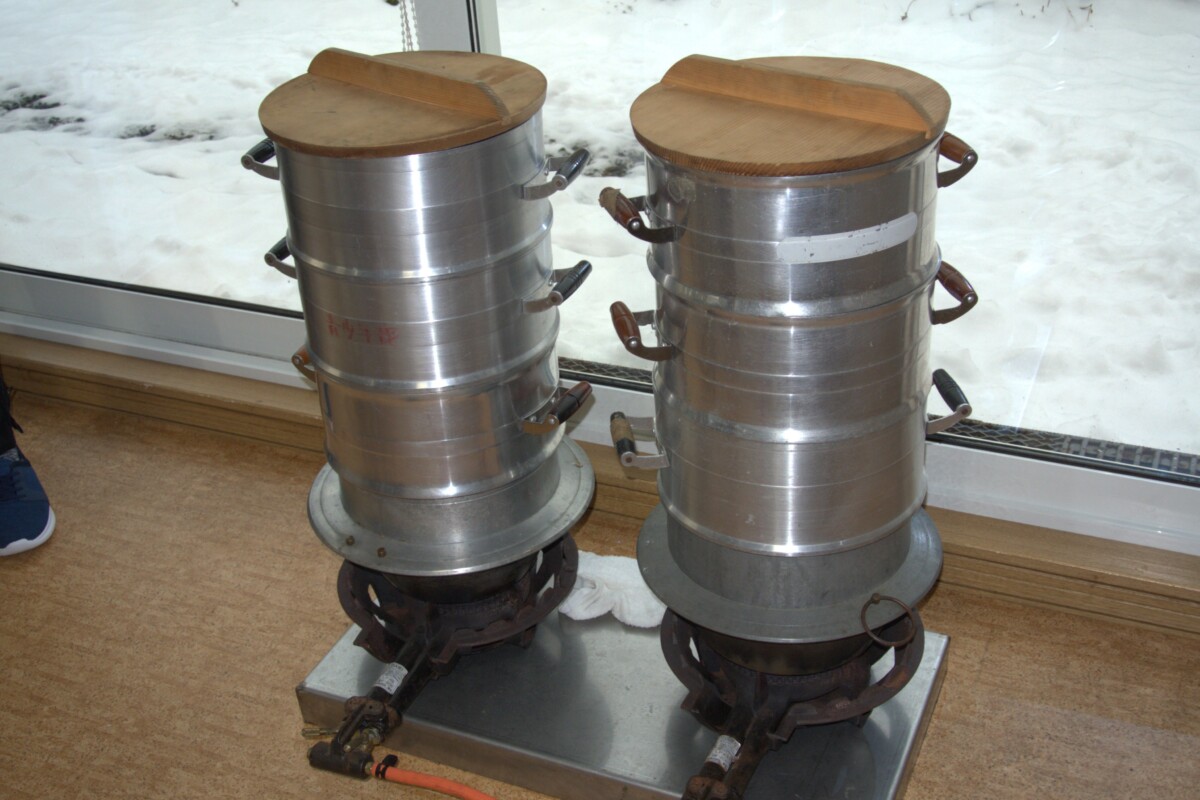 朝早くから町内会の方が会場の準備を行い、蒸し器でもち米を