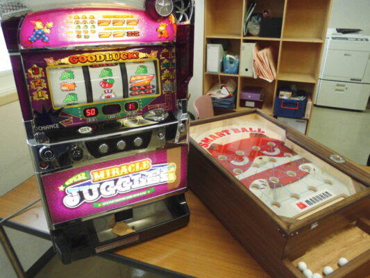 懐かしいスロットマシンやスマートボールで、
