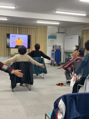 参加者の中には、一人暮らしの方も多く、家にいるだけではなく、外出をして体操を行ったり、仲間と会話を楽しんだりすることで、体力の維持やストレス解消にも繋がっています。