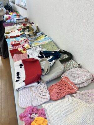 千歳市ボランティアセンターの“あみものボランティア”さんが作ったニット製品や布小物、