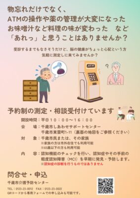 物忘れなど認知機能の低下が気になる65歳以上の千歳市民