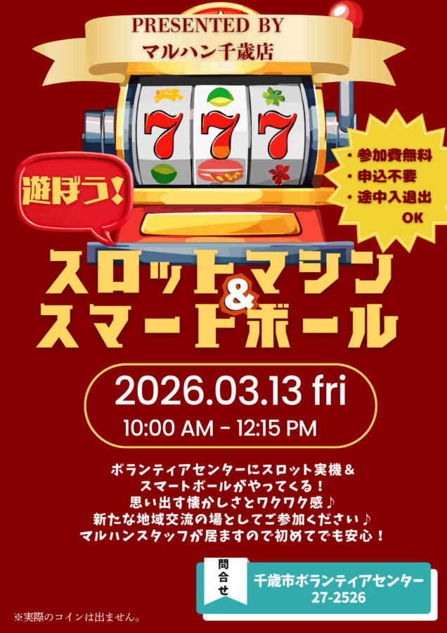 | お知らせ2026.02.05 | 【ボランティアセンター】3/13(金)スロットマシン&スマートボールで遊ぼう! |